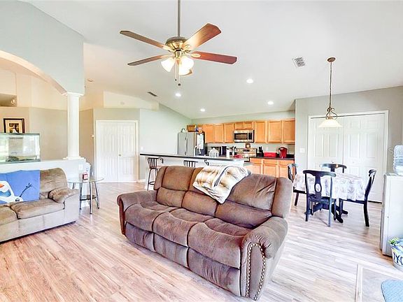 If move in ready is what you are looking for, then this is the one for you! This 3 bedroom, 2 bath with a study offers an open floor plan, perfect for entertaining. The over-sized kitchen features new stainless steel appliances and a big kitchen island, which overlooks the great room and nook area. The home features beautiful vinyl plank flooring in the kitchen, main living areas, master bedroom and office. The master bedroom features a large master bath with shower, garden tub, double sinks and a large master closet. Both bathrooms feature granite countertops and ceramic tile. Outside, a large back patio awaits for those summer barbecues. If that wasn't enough, this home is sitting on the best lot in Blue Springs Villas as it overlooks the community park. This home is centrally located in Orange City close to shopping, dining, Mill Lake Park and Collin's Dream Skate Park. At this price, it won't last long, come see it today!