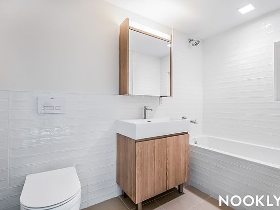 The building includes a fitness center, a dedicated yoga room, a co-working space, an elevator, secure bike storage, and package lockers, all enhanced by a high-security Latch system with keyless entry. After a long day, unwind on the rooftop and take in the stunning 360 view of Brooklyn and the city skyline.