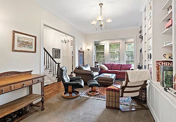 Located on the highly coveted and extremely quiet Vanderbilt Street. Only one block long and a 600 foot walk to the park, Vanderbilt Playground, and Uncle Louie G's ice cream shop! This one-of-a-kind home is built 19 feet wide and features *WINDOWS ON THREE sides as well as a RARE CURB CUT for private parking located in front of the house.* Windows from three sides of the house provide warm sunlight and a sense of airiness. *Sitting on an extra large 150-ft lot*, the extremely deep backyard is landscaped with a brick path weaving through and features a pergola and beautiful giant Red Oak tree. Upon entering the double-door foyer, this gorgeous home opens up into an open flowing living room and the separate dining area features a wood burning stove. The chef's kitchen was designed to maximize the views of the backyard with an additional dining area in the sunroom off the kitchen, perfect for your morning cup of coffee or tea. Note, if you prefer a gas range, there is a capped gas line located under the induction cooktop so it can easily be switched back over to gas. Across from the kitchen is a full bathroom and vented washer & dryer. The second floor has three generous bedrooms, an office, and a full bathroom. The third and top floor is currently utilized as a bedroom and office. It also provides access to the home's square turret! The full basement has a sauna, ample storage, and a storm door for access from the driveway. The location cannot be beat: 1 minute walk to the park and the playground. One of the most quiet streets in Windsor Terrace at only a block long with almost no through traffic. The best of the dining scene at your fingertips including Le Paddock, Cena, Della, Hamiltons, Batata, to name a few. Easy access on and off Prospect Expressway and the F and G trains. Of course the Farmers Market which is open Wednesdays and Sundays at Bartel-Pritchard Square!