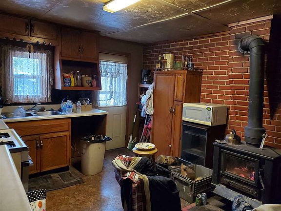 Lead fixer upper. Main floor has one bedroom, kitchen, bath, and living room. Upstairs consists of 2 rooms--a bedroom and a sitting room. One stall garage that is in need of repair. Heat is a wood burning stove in the kitchen and a gas free standing fireplace in the living room.
