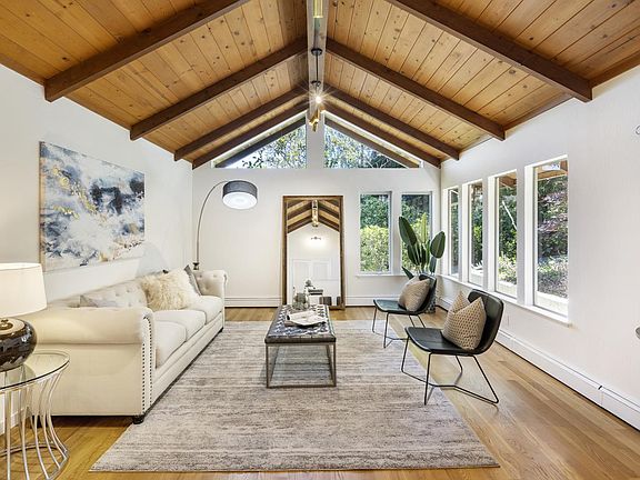 Stunning ranch style home in Emerald hills on a HUGE 13,760 sq ft lot with mature fruit trees, raised vegetable planters, hot tub/spa, and bocci ball court. Property is 2,280 sq ft, with 4 bed/3bath plus a permitted detached pool house at the rear, approx 308 sq ft with a full bathroom. Could be used as a home office, guest house, or in-law unit. New carpet and paint throughout plus stylish new light fixtures. Stunning vaulted ceilings in the master bedroom and formal living room plus skylights throughout give the interior a mid-century modern vibe. Quiet, peaceful park-like setting yet just minutes from downtown San Carlos and Redwood City. Easy access to HWY 280.