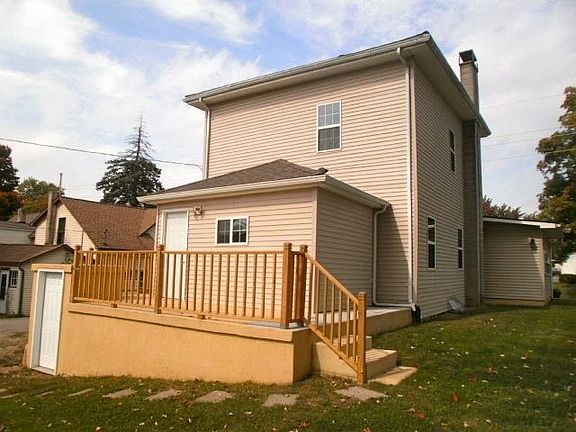 Completely remodeled 4 bedroom 2 story home with 2 full baths in town. This is a must see! Beautiful fireplace, gorgeous wood floors, solid 6 panel doors and high end lighting fixtures. 2 entrances to dry basement, detached 2 car garage and a large deck off the back of the house. Lots of storage in the heated garage with built in cabinets. The entire house has been freshly painted. So many updates!