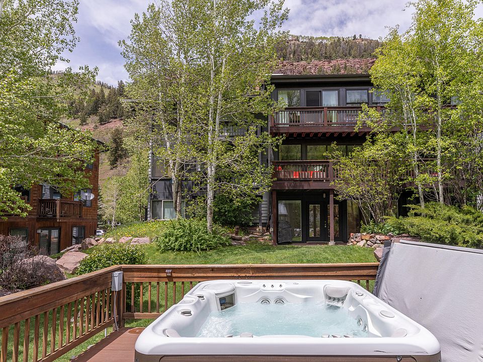 Patio areaCommon hot tubFrench doorsLarge storage areaExpansive common green spaceLarge green common spaceSpacious luxurious bathroom