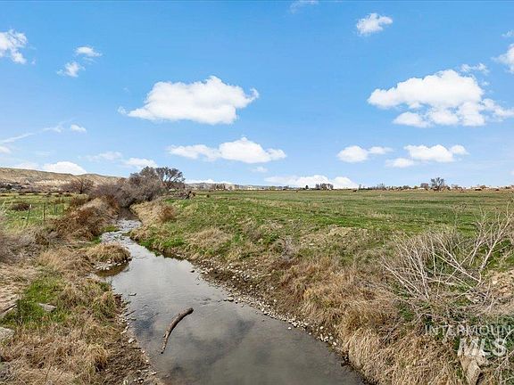 Enjoy peaceful country living from this 1940s farmhouse on over 31 acres in Emmett, Idaho. The property is in a very private location with year round live water from Black Canyon Drain Ditch. The level acreage is suitable for grazing horses or livestock with its irrigated cross fenced pasture, 2 corrals, animal shelter, and squeeze chute. Gravity-fed irrigation from the canal through a private headgate and the 1400 ft of gated pipe provides water for the pasture, which has the potential to yield grass hay. Additionally, 20 irrigation shares are included through Farmers Coop. For storage or hobby projects, the land boasts a 30ft x 60ft barn with concrete floors, 2 stalls, and 220V power. The 3 bedroom home features NEW laminate and tile flooring, NEW carpet in the bedrooms, central AC, and a cozy wood stove. The residence presents an ideal opportunity either as a flip project or as a site to build your dream home. This beautiful rural property is conveniently located only 2.5 miles from downtown Emmett.