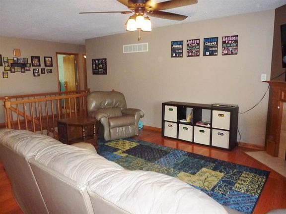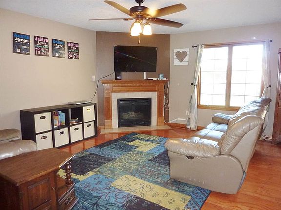 Spacious 4 BR, 3 BA home on large corner lot! Functional floor plan with open kitchen, dining, and family space. Gas Fireplace, granite counters, main floor laundry, new carpet in main floor bedrooms, finished lower level family area, bathroom, and non-conforming 5th bedroom. Private backyard with deck, fire pit, and newer landscaping. Huge heated garage with 4 stalls if wall removed. Seller reserves garage cabinets, countertops, and swing set.