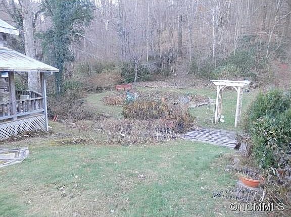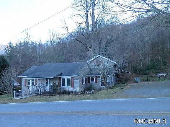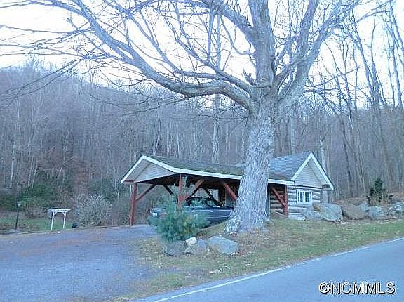 Seller will review any/all offers submitted by 12 pm on 1/6/2022. Whimsical balsam cottage surrounded by mature flower gardens, pond, and relaxing rushing stream. The original part of this 1940s home features a bedroom, office/bonus room and updated bathroom. A breezeway with laundry closet and half bath leads from the open farmhouse kitchen & dining area to a one of a kind historic mid 1800's hand hewn 2 story log cabin addition and enclosed sun porch that offers tons of character. Spacious upper level bedroom suite boasts vaulted ceilings, walk in closet, and a charming claw foot tub. A detached carport made from old corn cribs offers additional storage room or workshop space. 2016 Architectural shingle roof, septic tank pumped in 2020. Located minutes to downtown Waynesville, Sylva and quick access to the Blue Ridge Parkway. Property adjoins 50+ conservancy acres owned by Haywood Community College.