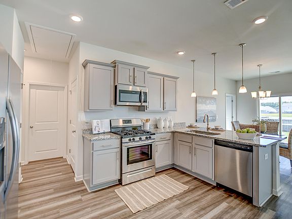 Welcome to this charming single-story home overlooking a pond in Moncks Corner! This home has lots to love. An attractive exterior greets you as you step inside to be greeted by attractive wide plank flooring that flows seamlessly throughout the open concept living areas. The heart of this home is a gorgeous kitchen featuring granite counters, stainless steel appliances, and a convenient peninsula with counter seating, perfect for casual dining and entertaining.The primary suite is a serene retreat, complete with a walk-in closet and a full bathroom for added convenience. Two additional bedrooms and a full bathroom provide ample space for family, guests, or a home office. The home also includes a dedicated laundry room and a two-car garage, adding to the convenience andfunctionality of this property. One of the standout features of this home is the screened-in porch, where you can enjoy the outdoors in comfort while taking in the tranquil views of the fenced-in backyard, which overlooks a picturesque pond. Enjoy both sunrises and sunsets and visitors to the pond like ducks and geese. This space is a great blank slate for your gardening aspirations, offering the opportunity to create your own garden oasis. This property is located 4.5 miles from Cypress Gardens, 6.5 miles from Publix, 7.5 miles from Roper St Francis Berkeley Hospital, 13 miles from downtown Summerville, 15 miles from Lake Moultrie and 18 miles from Charleston International Airport. This lovely single-story home combines modern amenities with a relaxing atmosphere, making it the perfect place to call home. Neighborhood amenities include a pool and a disc golf course. Don't miss the chance to make this beautiful property yours and enjoy all the comforts it has to offer.