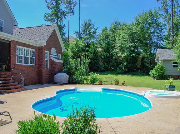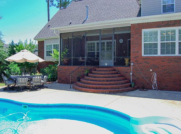 Every amenity and tremendous value! 4,000+ SF on over half an acre, 3 BR/2.5 BA downstairs (including the Master), 2 BR/1 BA + Bonus Room upstairs! Two spacious dining areas, two living areas with gas fireplaces! Master Bedroom offers window bench and en suite bath with dual sinks, jetted tub, tiled shower and walk-in closet! All bedrooms and living areas feature beautiful wood floors! Spacious kitchen with granite, wall oven and gas cooktop! Screened porch overlooks lagoon style pool and spa!