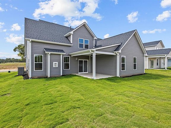 The Sutherland home offers over 2600 square feet of luxurious living space, crafted for those who desire both comfort and sophistication. The expansive front porch leads to a welcoming foyer and an adjacent dining room with coffered ceilings. The seamless flow between the spacious family room and the well appointed kitchen is perfect for entertaining. The large windows in the family room offer wonderful natural light and the gas fireplace with stone surround gives the room a cozy feel. The open kitchen has an peninnsula with farmhouse sink for additional seating, large island for extra prep space, beautiful light brown cabinetry, white Quartz countertops, tile backsplash, and stainless steel appliances including a gas range/oven and built in microwave. The adjoining breakfast area leads out to the covered back porch which overlooks your large backyard. The Primary Suite is also on the main level for added privacy. Enjoy a generous walk in closet and spa like bathroom with double vanities and a beautiful tiled shower with built in seat. Once you go up the grand Oak staircase with open rail that overlooks the living room, you will find three more bedrooms, all with walk in closets and two full baths. Come by today for your personal tour and make Kayfield at Midway your new home. All our homes feature our Smart Home Technology Package including a video doorbell, keyless entry and touch screen hub. Additionally, our homes are built for efficiency and comfort helping to reduce your energy costs. Our dedicated local warranty team is here for your needs after closing as well.