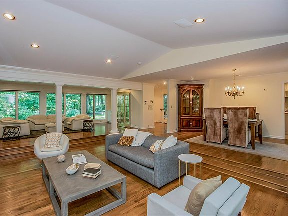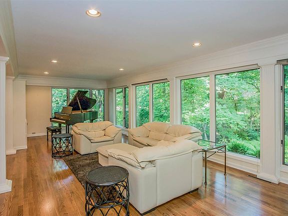 North-end 6-bdrm, 5-bth, 4,303 sq-ft ranch treasure on Iowa City's timbered high ground. Elegant, spacious remodel w/ restful views. Highlights: stained oak floors,3 FPs, white trim & interior columns, many built-ins, cathedral ceilings, impressive natural light, 3-HVAC zoning, private deck, landscaping w/ waterfall. 1-acre+ lot. Main: spacious open living/dining area; kitchn w/ brkfst nook; pwdr rm; Great Rm/libr crafted walnut; MBR suite. Walkout LL: 5 bdrms, 3 bths, wet bar, storage, laundry, mechanical.