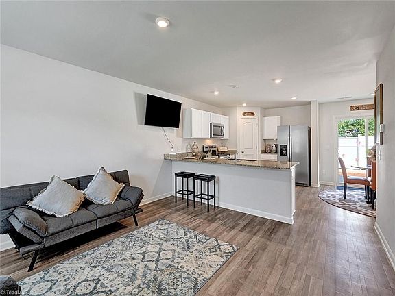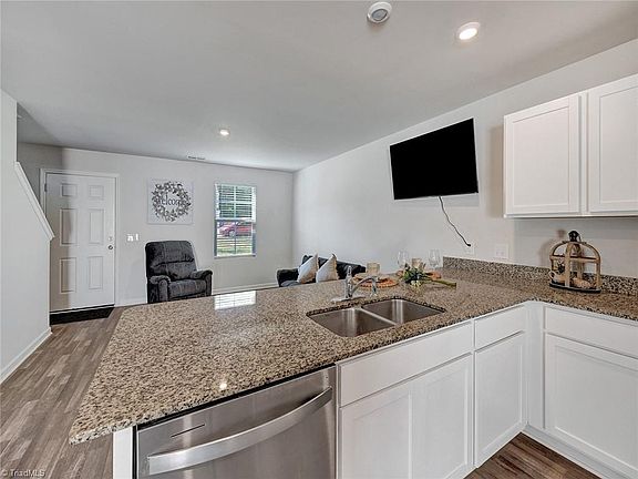 Adorable, better than new home in popular Ridgemont with no HOA! Built in 2022 with new vinyl privacy fence installed and upgraded larger patio. A new, upgraded 30 year roof just installed! The open great room / kitchen offers an airy light feel with granite counter tops, stainless appliances, spacious breakfast nook and white cabinets. The second bedroom on the main level has a full bath, perfect for visitors. Upstairs features a primary suite with large bath that includes dual vanity. Two additional bedrooms and full bath upstairs with a large loft space perfect for a bonus room or office area. One of a few homes in the neighborhood that has a two car garage. Quiet, dead end street! New refrigerator and washer and dryer to convey. Home could be sold partially furnished. Convenient location close to Mocksville town square. Make your appointment today!