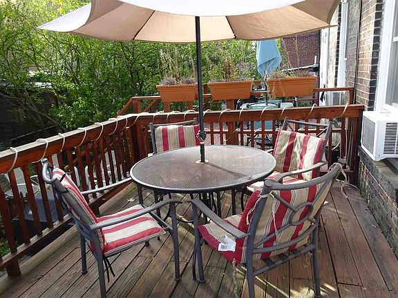 Great Hoboken location close to all transportation. Amazing 1 bedroom (640 sq. ft.) plus 1 bonus room/den on the parlor level with private yard (accessible through living room), updated kitchen with granite counters, stainless steel appliances, updated bathroom with jetted tub, 10 ft ceilings and tall windows, exposed brick, lots of closet storage, ceiling fans in living room and bedroom, and private washer/dryer in basement. Available June 1st.