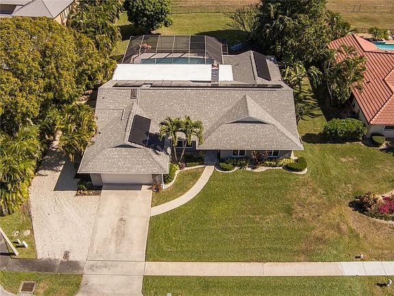 Spectacular is the only way to describe this meticulously renovated 4 bed/2 bath home with den! Know that your electric bills will be reduced with your solar panels, new roof, new insulation and impact windows! From the moment you walk in the front door of this open concept home, you notice attention to detail; from the ceiling lighting to the under cabinet motion lighting in the bathrooms, and everything in between. All has been done! Get your beverage from your coffee/beverage bar and sit outside by your salt water pool in a screened back patio with a view of the Golf Course. Florida living at its best; a beautiful outdoor kitchen, with two cabana bathrooms and an outdoor shower. No expense was spared by this owner, a contractor. Seller would love to sell turnkey. Come and see! Home has nighttime perimeter lighting, plenty of parking for boat or RV. Improvements too numerous to list, to include bamboo floors!