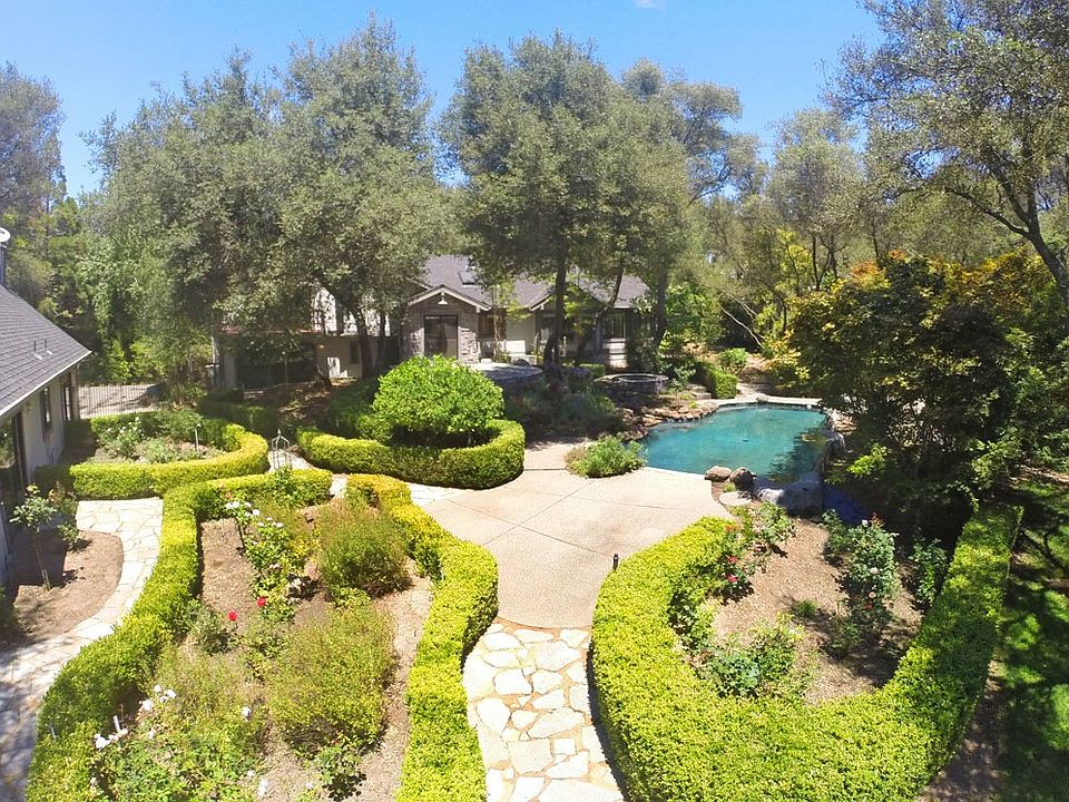 Gated and private Carolinda Estates. 2.3 acres surrounded by lush landscaping, pool, spa, and rose garden. Main house with a sun filled great room with wood vaulted ceilings and fireplace. Formal dining room with white wainscoting and views. Sun room or office with French doors to the outdoor gardens. Lower level expansive bonus room with fireplace and bar area. Guest house approximately 1152 sq. feet with living room, fireplace, bedroom, bath, and kitchen.