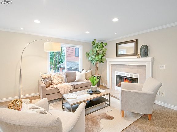 Nestled in the trees and centrally located in Hillsdale, this townhouse style condo lives spaciously with just over 1,325 sq feet. Buyers will enjoy an open living/dining/kitchen floor plan with a wood burning fireplace, a deck with private views of greenery. 2 bedrooms and 1.5 bathrooms, including a primary suite has an attached bath + upgraded closets. Plenty of storage with extra closets and attached garage. Minutes to eateries & shops of SW Portland's Hillsdale. [Home Energy Score = 8. HES Report at https://rpt.greenbuildingregistry.com/hes/OR10161494]