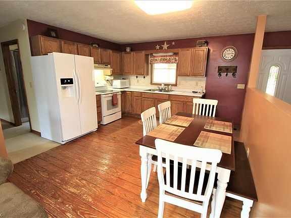 Tucked away on 12.59 acres which are mostly wooded. A hunters dream to hunt on your own property. This home offers an eat in kitchen with newer appliances, open concept floor plan, living room, 3 bedrooms, 1 full bath, spacious walk out full basement that could be finished into more living space. Large covered back deck. New metal roof May 2018. Property has two heating sources. Electric forced air or wood burner that is already vented in to the duct work. 30 x 24 Pole barn with concrete pad,electric and plumbed for water but not connected. Only a few minutes from town, Franklin Local Schools. This property is a rare find and will not last. Contact the listing agent for more details.