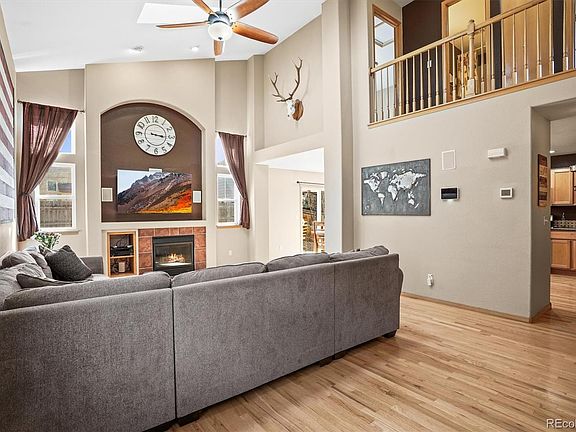 Welcome to your new home! This 4-bedroom, 4-bathroom, wonderfully cared for home is perfectly situated on a quiet cul-de-sac in Firestone, Colorado! As soon as you walk through the front door you are greeted by beautiful site-finished hardwood flooring that extends throughout the entire main level and tons of windows giving way to an abundance of natural sunlight. Cozy up next to the fireplace in the living room on those cold winter evenings, and enjoy time in your private back yard Oasis with extended concrete patio on those perfect Summer days. The roomy kitchen sitting just off of the dining area, is a chef’s dream complete with a gas cooktop, ample counter space, and plenty of cabinetry for storage. The upper level features a large primary bedroom with attached bathroom with dual sinks, a toilet room, tub and shower and a large walk in closet. The 2 secondary bedrooms and the hall bath complete the upper level nicely. The finished basement adds incredible versatility with a large recreation room, 4th bedroom featuring a walk in closet, and a full tastefully updated bathroom with a shared laundry room. The rec room is perfect for extra living space, a home gym, or a playroom. The possibilities are endless! Enjoy peace of mind with a newer roof and newly landscaped front yard with drip lines. Stay comfortable year-round with central A/C, and take advantage of paid-off solar panels, providing significant monthly energy savings! PRIME location near parks and trails, and within walking distance to 2 elementary schools. Don't miss this amazing opportunity to own a well-maintained home in a great neighborhood. Schedule your showing today!