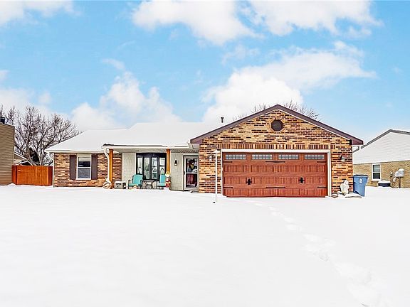 Owner’s pride shines throughout this soft, contemporary ranch loaded with WOW FACTOR and many unexpected extras. Its attractive brick and vinyl exterior is enhanced by dimensional roofing, vinyl replacement windows, a new insulated garage door, decorative glass entry/storm doors and a NEW double concrete driveway w/bonus side drive. New exterior lighting, architectural “shingled” siding and natural stained porch columns add to the exterior appeal. New water heating and HVAC systems allow for efficiency and additional piece of mind. Luxury vinyl plank flooring flows from the formal entry into the large, eat in kitchen complimented by an abundance of white cabinets, granite countertops, an artistic tiled backsplash, full appliance package and large eat in area w/bayed window for lots of natural light. A newly installed coffee bar, multi depth drawers and creative pass through to the Great room finish this special space. Cathedral ceilings soar above the Great room w/upgraded carpeting, a feature wall fireplace and new patio doors out to a newly poured concrete covered patio. Guest rooms group around a renovated hall bath with newer toilet, granite topped vanity, modern fixtures & vinyl plank flooring. The primary suite is located ideally opposite the others showcasing dual closets & a large, beautifully styled bath w/dual sinks, a new toilet, modern fixtures, luxury plank floors, auxiliary storage and a double shower w/hi-def track doors and mobility assist bars. All bedrooms feature upgraded carpeting and ceiling fans. The back yard is framed in 6 ft privacy fencing and sports a MASSIVE, newly added garden house w/windows, double doors, built in shelving, work bench and metal roofing. It matches the house offering flexible uses to include man cave, work shop, she shed or children’s play house! Additional storage exists in the secondary storage shed and attached 2 car garage w/built in shelving, cabinetry and disappearing attic stair access. Priced for Action