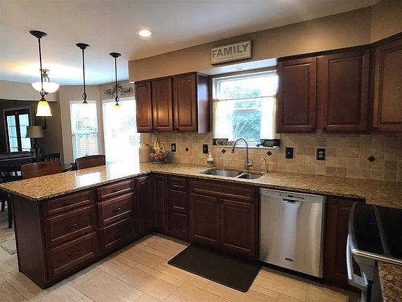 Immaculate home with three beautifully finished levels and an outstanding backyard paradise! Modern style kitchen features granite counters, designer backsplash, and pendant lighting. Rich hardwood floors in living and dining rooms; luxury vinyl tile in the kitchen and basement. Lower level not only has a nice sized family room, but also an exercise area and half bath. Huge stamped patio with pergola and a hot tub that stays. Completely fenced private backyard includes a fire pit area and well-maintained pool. This is an entertainer's dream!