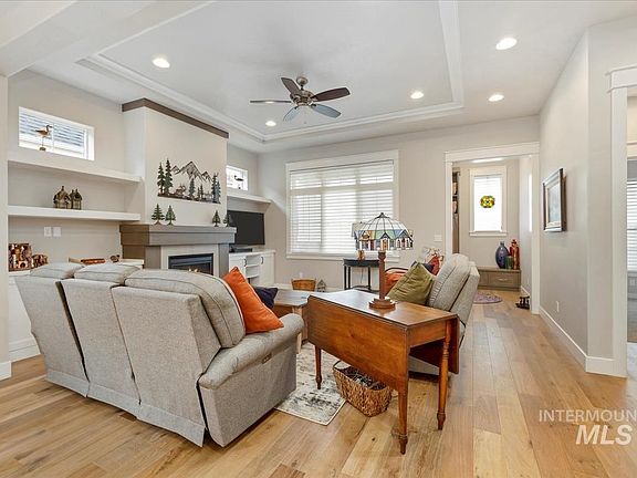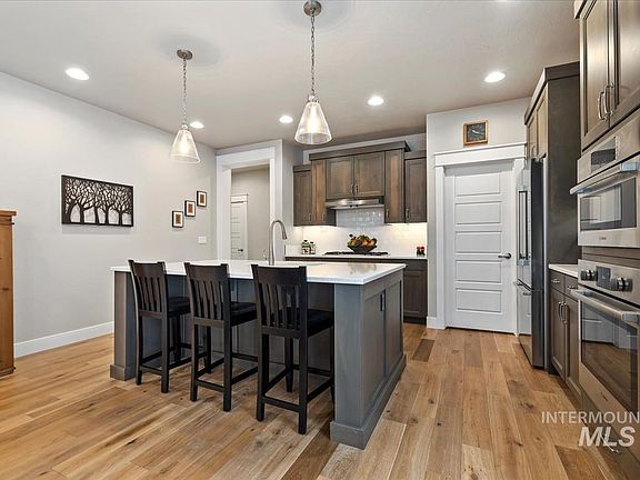Welcome to Meridian's premier 55+ community! This lovely home is located in the highly sought after community of Cadence at Bainbridge. Boasting just over 2000 sq ft, this great home features all of the upgrades! From the upgraded tile showers and floors in each of the 3 bathrooms, to high end stainless steel Bosch appliances, to the engineered hardwood floors that run throughout the home. This builder put in time and effort on the craftsmanship and quality of this home, and it shows. This home features upgrades that are no longer offered through the builder on new builds. Don't miss out on luxury! The tight-knit community offers access to their phenomenal clubhouse for activities, games, workout classes, and so much more. Before you leave, make sure that you check out the well equipped workout room, the lap pool that seems to always be 80 degrees, and the relaxing spa! Don't miss out on your own little piece of paradise, it won't last long!