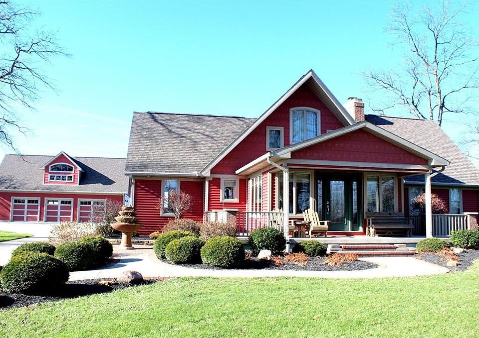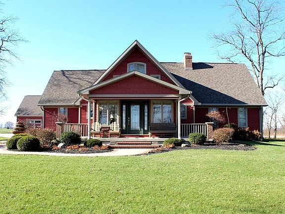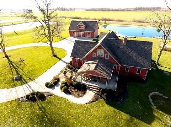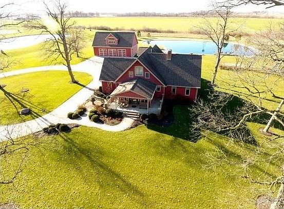 Remarkable homestead on a beautiful country setting; Sunrises AND sunsets are amazing! 3 Bedrooms, 3 Baths, 2 Car Attached & 3 Car Detached Garage with loft, on 6.1 Acres with a gorgeous swimming pond! Per Seller's request; Buyers must produce a Letter of Loan Approval before scheduling an appointment. All will love the open floor plan, unique spiral staircase, & gas fireplace with 2 flues so you could add one to the supersized SWEET Master Suite if you desire! The CUSTOM Hickory Kitchen has amazing storage & character! The Security System, Anderson Windows and Zoned Heat & Air are just a few of the upgrades. Bonus of a detached 3 Car Garage. The pond is used for swimming; with the beach area gradually extending to approx 15' deep on the edges; very well maintained. The filter strip on the back of the property to the creek produces $175. per year from the County. Call your Agent today!