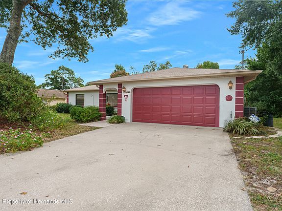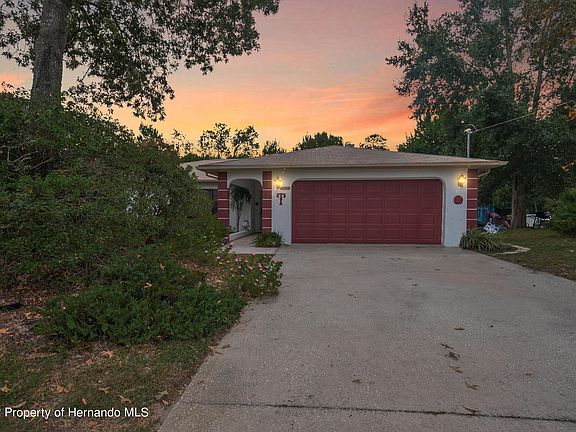 Active Under Contract - Accepting Back Up Offers. Welcome to your own little slice of Americana, this 3 bedroom 2 bathroom single-family ranch style pool home sits on a little over a quarter acre, at .37 acres and 1608 living square feet, perfect for the small family. When you first enter the home you'll notice to your left the living room with large windows facing the front yard giving the room natural light and life. Accompanied by light coming from large glass sliding doors seamlessly opening the house to the outside patio lanai. The open floor plan flows right into the dining room, and is separated with a breakfast bar that you can spend your mornings before work with family eating breakfast. You'll notice that the kitchen is well lit with natural light from the skylight in the kitchen, ensuring that you can see all of those meals that you're preparing. Granite counters and wood cabinets offer loads of storage space. The window behind the sink in the kitchen actually could be used as a serving window for those summer days with the family out by the pool. Making our way to the right side of the house we will find carpet through out except in the wet areas of the house, a primary bedroom with a large walk-in closet and a connected bathroom that has a standup shower. There is access to the pool lanai from the primary bedroom, for easy access to change after taking a dip. Making our way over to the left side of the house you will notice the laundry room by the front door and access to the Garage, then as we continue we will have the two remaining bedrooms that share one bathroom it has a tub/shower combo. Both bedrooms have large closets, and the room towards the back has access to the pool lanai through gorgeous French doors. The screened in pool has tons of shade From the various foliage in the backyard, surely will be gorgeous when spring comes around. Located just 15 minutes from the Suncoast Parkway, and near the intersection Cortez Blvd and Commercial Way. Short 5-10 min drive to many shopping plazas, grocery stores, and stuff for entertainment. Practically a stones throw from the Weeki Wachee Springs. A location like this is sure to go quick, don't miss out and contact us today!!