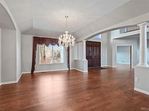 Luxury finishes will impress as you enter this sprawling home by Golden Design. Beyond the foyer, the impressive main floor features vaulted ceilings, a floating "Hollywood" staircase and newly finished hardwood floors, all brightly illuminated by an impressive wall of windows. French doors open to the private office across from an elegant formal dining room, with a tray ceiling and designer chandelier. An inviting formal living room with fireplace will offer a warm greeting. The gourmet kitchen with solid granite surfaces, central island and stainless steel appliances, flows seamlessly to the adjacent breakfast nook. Steps away you can see the great family room with natural light, butler pantry, impressive ceilings and another fireplace. This is a perfect house for entertaining as you access the large deck with natural gas grill and built-in hot tub. Notice the professionally landscaped yard and trampoline that backs to 2-5 acre spacious lots, creating a unique surrounding for your retreat. The upstairs main suite features a sitting room with bar, large bedroom with an updated main bath/shower next to a walk-in closet larger than some bedrooms! With two more bedroom suites and another guest room suite separated by an elegant landing and walkway, your privacy and comfort is assured. A second flight of stairs leads all the way down to fully finished basement. As you enter, notice the included pool table, deep window wells, another bedroom, full bathroom and exercise room. As you turn the corner, a great entertainment area with a bar greets you, with a hidden wine cellar behind the adjacent utility room. You'll find lots of storage here too. As you leave, notice the cherubs on the wall...check out what they're hiding! Located on one of the prime corner, shielded cul-de-sac lots, this home has over 20,000sf of mature landscaping and is close to Regis HS, convenient shopping and Cherry Creek State Park. Broker discloses ownership interest.