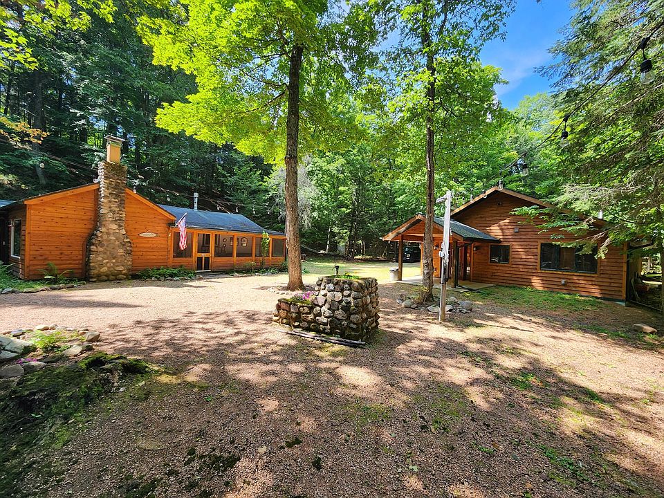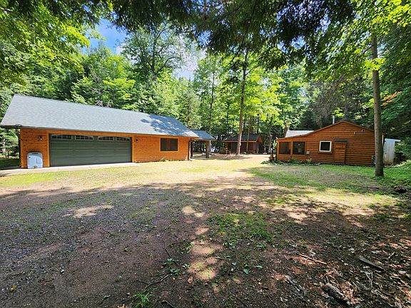 Discover a unique opportunity featuring 2 distinct cabins, each offering its own special charm & functionality on premier Forest Lake near Land O’ Lakes, WI! The 1-bedroom cabin is designed for year-round living & boasts a warm, inviting interior w/ beautiful tongue-and-groove knotty pine. This well-maintained home includes modern updates such as a newer septic system, durable shingled roof, & concrete patio. For added convenience, an attached 2-car garage provides ample storage space. Adjacent to the year-round cabin, the second 2-bedroom cabin offers seasonal charm & comfort, featuring a radiant heat stove, screened in porch, & a cozy fieldstone fireplace. The cabin is perfect for seasonal use or as additional guest accommodation. To top it off, there is a spacious screened-in gazebo w/ hot tub & electric, making it a perfect spot for unwinding in the evening. Don’t miss this chance to own an exceptional dual-cabin property that beautifully combines modern amenities w/rustic charm!