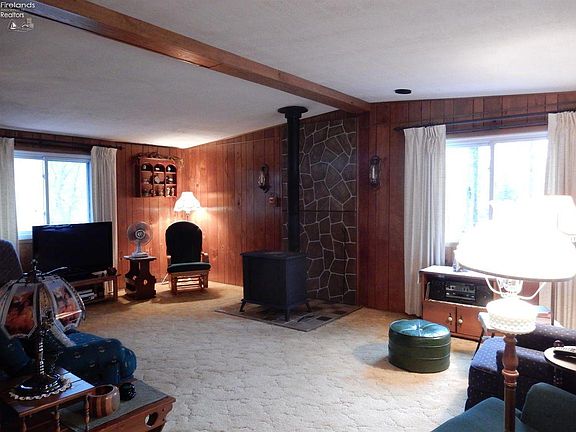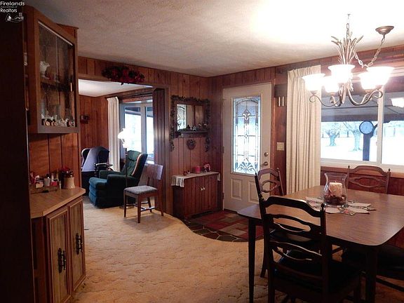 NO STRESS HERE! You must see this 3 bedroom and 1.5 bathroom well-kept ranch that overlooks the Vermilion River and sits on 2.97 acres! Enter to a cozy dining room and a roomy living room that has a wood-burner fireplace and a bay window accentuating the outstanding views of the property on every side. The dining room connects to the kitchen and the hallway providing privacy to the comfortably-sized bedrooms and the full bathroom (updated with new sinks and walk-in shower). The space savvy kitchen smartly connects you to the basement, the 1/2 bathroom and a 3 season room that leads to the wrap-around porch and the backyard. The walk-out, full, unfinished basement has a big workshop, a fruit cellar and unlimited possibilities. You can enjoy the backyard with rolling wooded area along the Vermilion River or the open front-yard guarded by towering pines. You can also appreciate the seasons through the newer windows. Oversized 2 car garage with attached shed. Come see-Come buy!