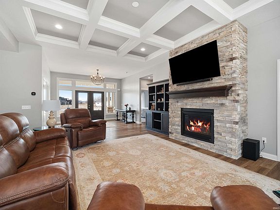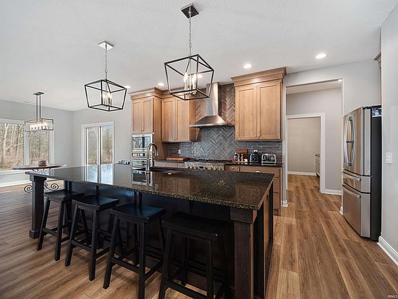 This one-owner custom built home by Maggos Builders is situated on one of the BEST lots in Eagle Rock!! Split bedroom ranch situated on a cul de sac lot that's .7 acre. Great curb appeal with double front doors, and a front porch that says Welcome Home! Enter into a gracious foyer that opens into the great room and kitchen. The great room features a coffered ceiling, stone fireplace, a custom bookcase, floor outlet and large picture windows to enjoy the view. The kitchen does not disappoint with a 9' island with farmer's sink, GRANITE countertops, GE Monogram gas stove with 6 burners and convection oven. Additional features in the kitchen include nook with large windows, backsplash, soft close drawers and a large pantry. Conveniently located to the kitchen is a fabulous BUTLER'S PANTRY with an abundance of cabinets, sink, Monogram beverage fridge, and leathered GRANITE countertop. Enjoy luxury vinyl wood flooring in the foyer, great room, kitchen, nook, master bedroom, office, flex room, half bath, laundry room, hallway. The master bedroom features a barn door that leads into the luxurious bathroom with pedestal tub, custom shower, double vanity, GRANITE countertops, and large walk-in closet with shelving and drawers. Bedrooms #2 and #3 share a Jack n' Jill Bath with double vanity. This spacious home also offers 2 ADDITIONAL ROOMS that can serve as a home office and flex room. A large (10x10) laundry room includes cabinets and sink. A large covered patio offers plenty of space for patio furniture and grill. The 3-CAR GARAGE IS OVERSIZED ( the 2- bay is appox. 27 x23 and the 3rd bay 12 x37) Additional features include a WALK-UP ATTIC that is partially floored (access is in the garage), water spigot in garage, and rounded drywall corners.