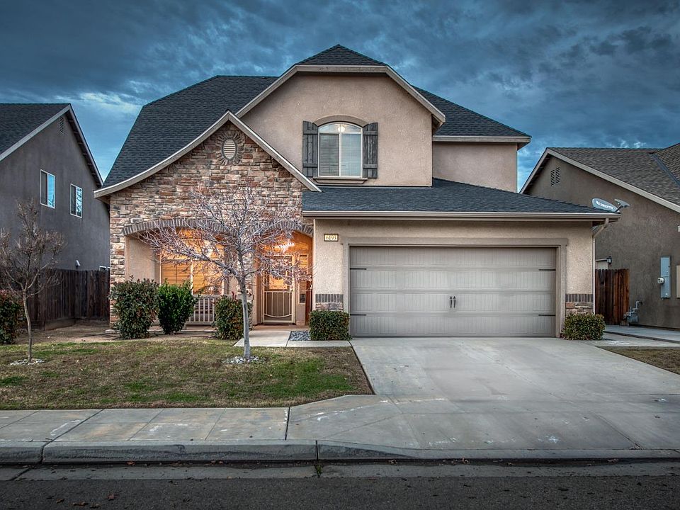 This charming Clovis Unified School District, 4-bedroom, 2 3/4 bathroom Lennar home is ready for you to call it "HOME''. Entering the home, you are greeted by a nice entryway that expands into the large open living space made for family gatherings and entertaining. The kitchen is appointed with granite countertops, stainless appliances, gas range/oven, and a large central island with breakfast bar seating. Located downstairs is a versatile bonus room that is ready to be transformed into a playroom, home theater, gyms, or a home office. There is a powder room downstairs with granite countertops, sink, and toilet. Upstairs, you'll find four generously sized bedrooms. Double doors allow entrance into the owner's suite with large and bright windows, high ceilings and plenty of space to relax. The owner's bathroom has granite countertops, dual sinks, wood cabinetry, soaking tub, shower, and large closet. The three guest rooms are spacious and have large closets. The guest bathroom has duals sinks, granite countertops, and shower/tub. Conveniently located upstairs as well is the large laundry room, complete with ample wood cabinetry for your storage needs. The backyard is a blank canvas waiting for you to add your finishing touches and there is an above ground pool for you to make a splash in the warmer months. This is a great house to call Home.'' Come check it out today!