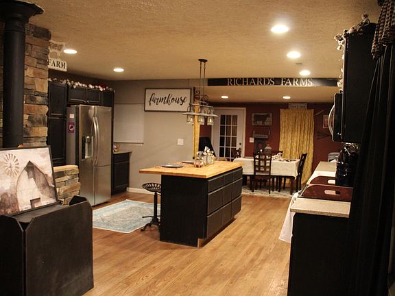 Completely remodeled in 2015 This property features a 3 bedroom, + office and 2 bath, walk out basement. All new electric, plumbing and heating and air. The house features an open floor plan with a wood stove sitting in front of a beautiful stone wall. The main floor bathroom features rough cut barn wood around bath tub and closet and has his and her vanities. Main floor offers 2 bedrooms. Hang out down stairs in the living room over looking the backyard and pasture. Enjoy the luxurious walk in tile shower with double shower heads. The big laundry room has double barn doors as the entrance. The master bedroom offers a decent size closet and connects to bedroom 4/office. Property has 10acres, 2 pole barns and 5 row fencing around pasture. One pole barn is a 45x72 insulated inside, concrete floors with a kitchenette, 1/2 bathroom and wood stove. The middle barn is a 24x48 rock bottom barn. House has an open floor plan. Contact Danielle at 618-472-2935
