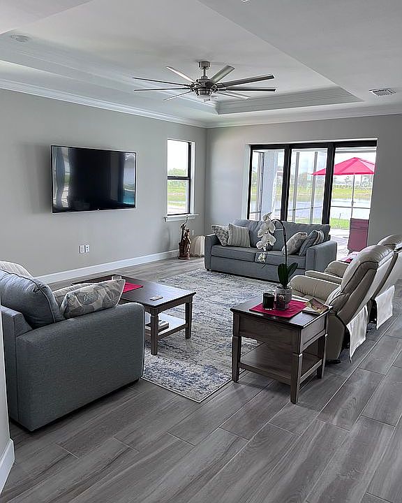 Pulte Reverence Model kindles conversation with its open concept. Over $200K in premium options. 3 Full Baths, includes Pool Bath, walk-in shower in Owners Bath, Jack & Jill Bath with separate sinks for 2 Guest Bedrooms. Flex Room includes closet and can be used as office and/or bedroom. Premium cabinets and flooring throughout. Ceiling Tray in Gathering Room, Owner’s Suite and Flex Room. Extended Cover Lanai and Extended Custom Pool with Hot Tub under Panoramic View Pool Screen. Crown Moldings and moldings around indoor walkways and windows.