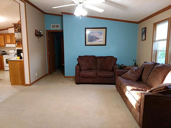 One level home a short drive Hutchinson! Three Bedrooms (2 + a full bath on one end, master suite with huge bathroom on the other end). Separate office, laundry room has exit door. Large, quality deck on back of home, great area for a future garage. Small shed in back yard. Easy living at affordable price, very affordable.