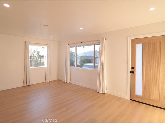 Luxurious Joshua Tree Oasis!! Central locate: This house boast two bedrooms, one bathroom Newly renovated, kitchen New recessed lighting with dimmers throughout. Beautiful new floors, and wood construction cabinets with dove-tail boxes, and soft-closing underdraw mounts. Unique custom countertops made from natural live hardwoods, and custom wood floating shelves with recessed mood lighting. A stainless-steel range hood and industrial chic ceiling light fixture with directional and spot lighting, bathroom offers a serene escape with a spacious bathtub, brass finishes, and a vanity mirror with its multi-color options and mirror defroster. New Cosmopolitan-style vanity with spacious counter. Complete with Spanish European style ceramic patterned floor tile, a large, detached garage. Perfect for an ADU or JDU, All-new paint for exterior and interior walls, argon gas-insulated double-pane windows, with central heating and cooling controlled by a smart Google Nest system. Solid white oak Japanese craftsman exterior and interior doors ensure a quieter environment, A generously fenced backyard provides space for family gatherings, star gazing, camping, and a variety of other activities. , turn the key and make it yours!