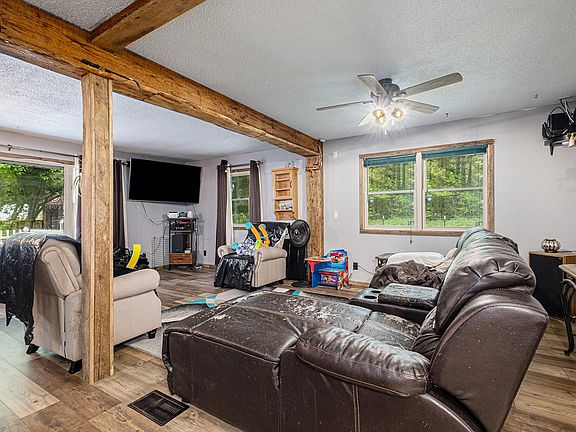In addition, this home boasts a spacious floor plan with well-appointed living areas trimmed with 100+ year old barn wood, comfortable bedrooms, & great amenities throughout! Sitting far off the road, enjoy the privacy & peacefulness of the front or back yard! The one outbuilding in the back yard offers great entertainment potential, as it is fitted with a full bar! See more* The detached garage is a dream come true for any hands-on homeowner. Featuring a service pit and an overhead hoist and creates an ideal setting for all your automotive or workshop needs.