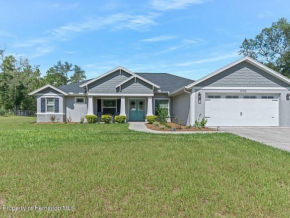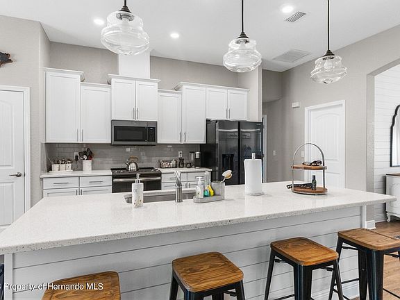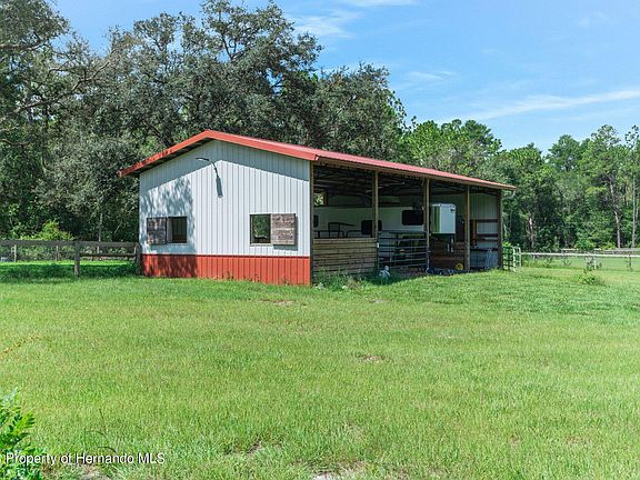 Active Under Contract - Accepting Back Up Offers This one offers so much!! GORGEOUS NEWER 3/2/2 Craftsman Style home (just built in 2019) on 2.4 acres, on a paved road, with large 4-stall (24 x 48) barn - all fenced and pastured with electric gated! 3 bedrooms + office + 2 full bathrooms + 2 car garage + formal dinning room + breakfast nook + large great room with pocketing sliders to the large covered lanai (32 x 10)! The home offers 1,992 sq ft of living space; 2,814 total sq ft! This Craftsman style homes offer a charming extended front porch, double door entry, and inviting foyer to welcome your guests! Large open floor plan with high ceilings make this home feel light, bright, cheery and spacious! Country charm crossed with modern upgraded finishes feels like a home featured in the pages of magazine! Shiplap walls and Quartz countertops! Designer farm style lighting and real wood, white shaker cabinets! Luxury vinyl wood plank floors throughout and subway tile backsplashes! This home is very well-maintained, very clean, and very much loved! The upgraded kitchen is GORGEOUS with beautiful Quartz countertops and large center island with sink, dishwasher and breakfast bar for extra seating! Breakfast nook table and dining table are nearby the open kitchen which makes for a great entertaining space! Upgraded, real wood white shaker cabinets with crown molding, closet pantry, newer stainless steel appliances, designer lighting and faucets. The home has a split floor plan offering privacy to the master suite. The master bedroom has tray ceiling with crown molding and ensuite bathroom with dual Quartz vanities and sinks, ceramic plank tiled soaking tub and walk-in ceramic tiled shower! Inside laundry room with laundry sink. Enjoy sipping coffee on your morning front porch and relaxing on your rear lanai watching the sunsets over your pastures and large barn! Barn has concrete center isle, two stalls with clay and rubber matts, double stall being used for hay, feed that can be converted into two more stalls. The barn power and water is nearby. Use this as a barn or convert it into a workshop/garage with covered parking. Multiple pastures and a riding ring on the perimeter. Board fenced with no climb fence, too. Enjoy the spacious lanai and large backyard! Easily has room to put in a pool. NO HOA - bring your RV, camper, boat, ATV's, horses, pets, chickens, bring it all!! Zoned AR2. NO FLOOD! Located just behind Oakwood Acres and not far for Hwy 50 and the Suncoast Parkway! Easy quick access to Tampa for work and play! 10 minutes to Weeki Wachee River for kayaking the clear river, boating, fishing, sunsets at Pine Island, hospitals, grocery shopping, shops, movies, restaurants! Everything is so close!! Home was built by Probuilt. Well. Septic. Double paned windows. Gutters and downspouts. The best part is that your neighbors are not on top of you! Nice views of your pastures! Come see what country living in the heart of town looks and feels like!