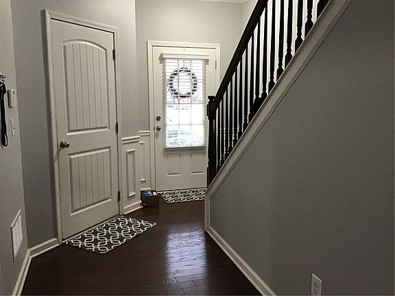 Fantastic South Forsyth location with excellent schools close to shops, restaurants, and Hyw. Lower level , stairs and upper hallways also have hardwood, carpet only in bedrooms. Open plan, Fully equiped kitchen open to great room. Large master with sitting area. Master bath had double sink, separate tub/shower. Large walk-in-closet. Other 2 bedrooms upstairs nice size with hall bathroom. Interior was painted las December. Private patio and level lot. Home in move-in-condition ,you won't be dissapointed. Botties,gloves and hand wipes available at the door