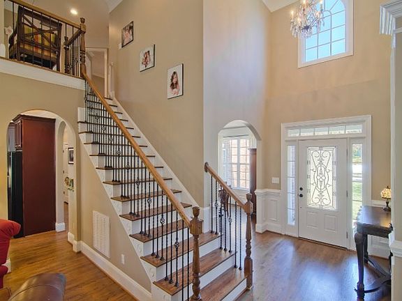 Experience country living in a beautiful full brick custom home in gated community with tons of upgrades. Soaring open floor plan with master on main. Gourmet kitchen with granite counters, tile backsplash & center island. Master suite has a double lighted tray ceiling, dual granite vanities & relaxing whirlpool tub. Hardwood floors, upgraded moldings, transom & bay windows give the home a luxurious & elegant feel. You'll love relaxing on the expansive deck overlooking a fenced yard with irrigation system.
