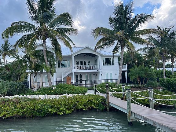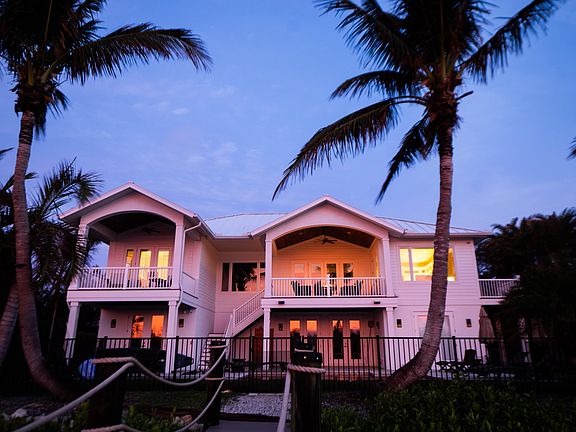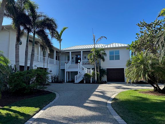 This distinctive custom home has everything you've been looking for situated on a quiet street on the West of Sanibel overlooking the Bayou. A true "Boater's" paradise, this property offers a private dock with electric & water, Gulf access & a 10,000 lb. boat lift. Heated, saltwater, fenced pool w/outside shower and a built-in firepit. Enjoy panoramic water views with an open floor plan. Great room with cathedral ceiling, French doors to the vaulted wood ceiling porch, perfect for watching Sunsets. Gourmet, eat-in kitchen with stain-less steel appliances, custom cabinetry and a small grilling deck right off of the kitchen. Home boasts engineered hardwood floors throughout, private elevator, office and a large primary suite with custom walk-in closet with a private porch overlooking the Bayou. The primary bathroom has a beautiful marble vanity, double sinks, soaking tub and walk-in shower. There is a private Guest wing that is separated from the main living area by a breezeway and covered porch. Two private ensuites assure your guests privacy and yours as well. Enjoy 3 garages, one long enough for tandem parking or boat storage. Surrounded by lush landscaping and shell pathways.