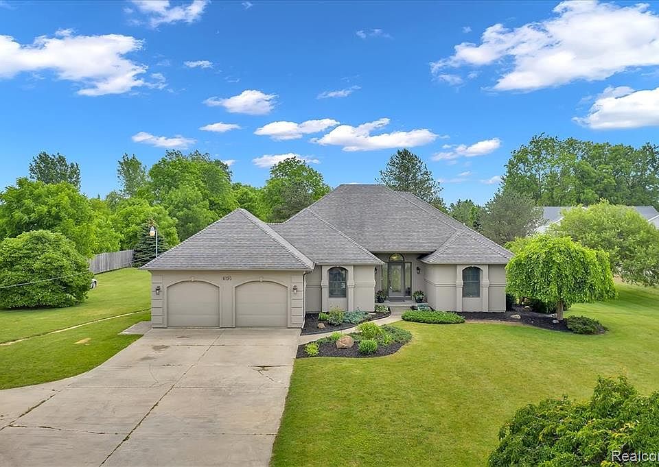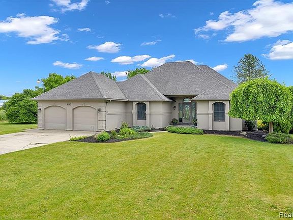 CUSTOM BUILD RANCH HOME on over an acre of beautifully landscaped property. Bring your interior design ideas to this open floor plan, and make it your own. Vaulted ceilings, huge primary suite, with gas fireplace and walk-in closet. Primary bedroom has glass french door to back deck, where you can enjoy the view of the pond and beautiful sunsets. Two additional bedrooms that share a jack-and-jill bathroom. Large great room with gas fireplace, and glass double french doors with sliding screens that open to the back deck. Main floor laundry. Kitchen with built-in breakfast nook. Partially finished basement with 4th bedroom. Basement has tons of storage, and a built-in work bench. Whole house water filtration. All paved roads, and minutes from downtown Grand Blanc, Atlas Country Club, and easy access to freeway. BATVAI
