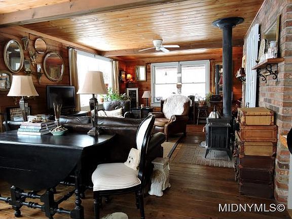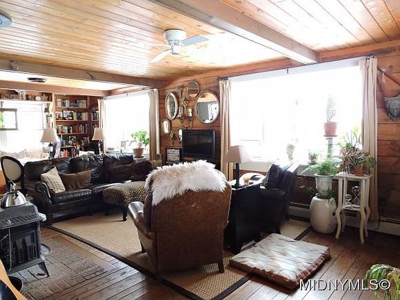 Get away to the quiet .. that is Russia. This stunning log home has 3 bedrooms, 2 baths, large eat-in kitchen, living room/dining room combo w/wood stove, wonderful sitting porches to enjoy the views, a great barn w/upper room, swimming pool/w shower on 5 acres. An additional 5.9 acres are available.