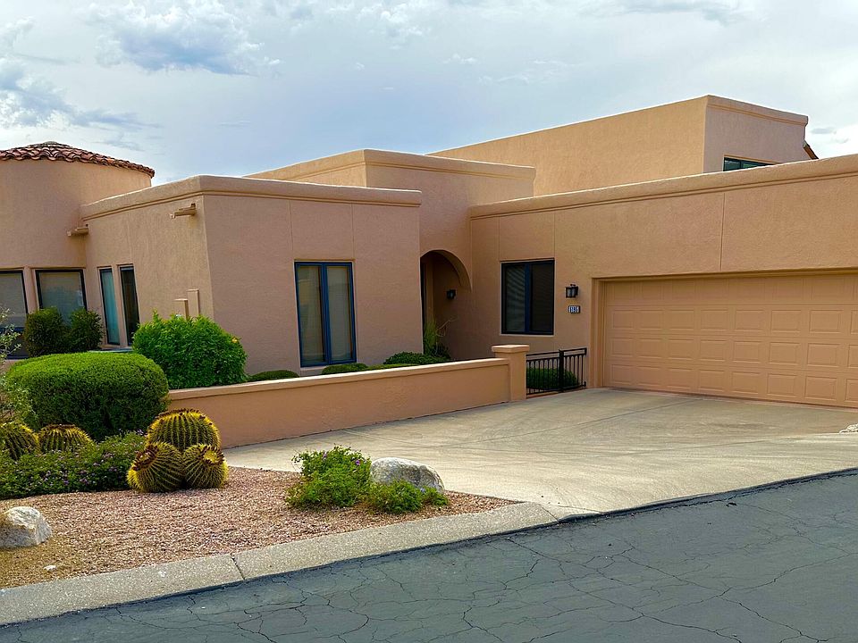 Welcome to La Paloma's ''Santa Barbara'' in Paloma Del Sol. The lovely villa situated on the 2nd fairway of La Paloma's Canyon Course has expansive views of the golf course, city lights and mountain vistas. The great room features a walls of windows, white-washed beam ceiling, slate FB w/gas. The kitchen w/cherry cabinets, center island, granite countertops and wine refrigerator opens to a charming breakfast room w/access to the side patio. The wrap-around patio is beautifully landscaped & is perfect for enjoying the views and entertaining. Spacious owners suite has a custom walk-in shower w/atrium. Current den was 3rd bedroom & seller will restore as a bedroom upon request.