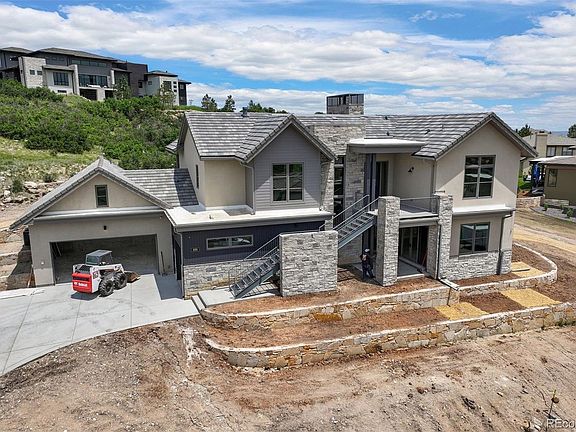At the top of Castle Pines Village, is the latest & maybe last significant New Construction community in the Village. Builders Len and Jake Goldberg completed the stunning Fore! homes on Castle Pines Dr N in 2021 and have launched the latest homes designed by well-known architect Godden Sudik. Situated on a sloped lot where the main level takes the best advantage of views to the south and west. Meticulously curated by Grace Simmering Interior Design, this 4 Bedroom, 6 bath open ranch style walkout features a Mountain Transitional stone/stained wood/stucco exterior. The thoughtfully designed chef’s kitchen features a large island, quartz counters, Thermador appliance package, casual dining, flex space, ideal for catered events and a walk-in pantry. The spacious great room with carefully selected finishes is central for entertaining with an open ambiance that allows flow to the covered patio or kitchen space. The owner’s retreat features a generous primary bath, his & her’s walk-in closets & access to the laundry space. A private office affords a quiet get-away. The lower-level invites activity or relaxation – with a game area, rec room, warm & cozy wet bar, separate workout room and covered patio. Of course, all bedrooms have en-suite baths and walk-in closets. There is a powder room on both the main level and lower level. The oversized 3 car garage has a golf cart bay or additional storage space. We are in framing!
