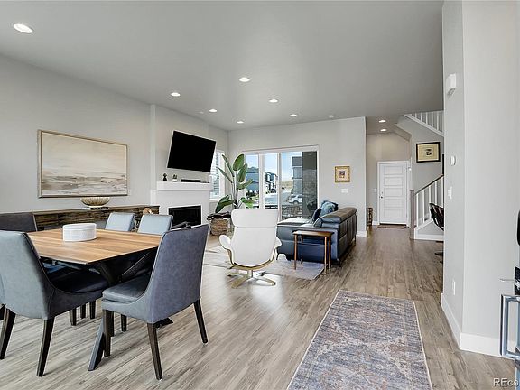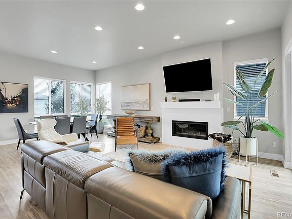 LOW MAINTENANCE LOCK AND LEAVE LIVING in the award winning Canyons community at Castle Pines. This home, located in the Douglas County Rock Canyon Feeder area is a Residence Four, built by Berkeley Homes, and is the largest of the models in the Stable View neighborhood with 4 bedrooms, 3.5 bathrooms and a flex loft space that can be turned into an office, gym or 5th bedroom. This home has one of the largest yards and driveways in the development. Imagine waking up every morning in a home that features luxury vinyl flooring, sunlight, neutral colors, open floor plan, and a gas fireplace in the great room. The sunlit kitchen offers practical functionality in an efficient layout. The ensuite primary bedroom is a great place to start and end the day. The private bathroom includes a walk-in shower, dual vanities and walk in closet. An attached garage is especially convenient in bad weather. This upstairs loft space is available for its original purpose, or you can get creative by treating it as additional flex space such as an office, gym or 5th bedroom. The finished basement, conveniently outfitted with a full bathroom, is currently serving double duty as multi-purpose room and a bedroom with an oversized closet. It can easily be reconfigured to suit your vision. Within comfortable pedestrian range of outdoor recreational opportunities, and from the shopping/dining options of Park Meadows Mall and Rock Canyon High School, the home also offers a painless commute to Denver Tech Center. After your local excursions, you'll return to the irresistible charisma of contemporary design, in the newer The Canyons development, where the streets are lined by sidewalks. This one checks your "must have" boxes.