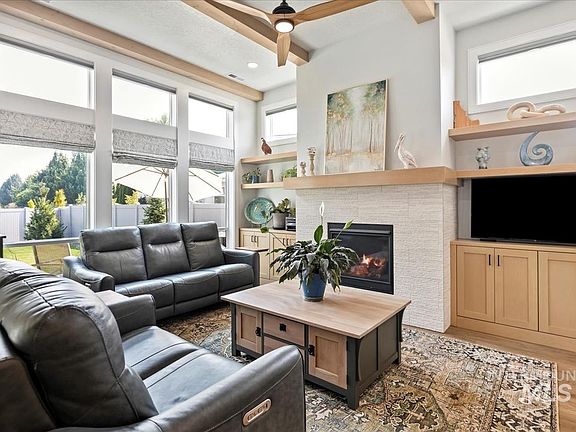 STUNNING. This gorgeous "Pottery Barn-inspired" single level home is just steps to the Boise River and Greenbelt and is poised on a tranquil lane in the coveted Perch Meadows community. This phenomenally designed and quality-built 2024 Core Building Company home boasts an amazing chef's kitchen (quartz counters, stainless appliances, gas cooktop, double ovens, walk-in pantry, dual bucket sink), light-infused great room with beamed ceilings and a gas fireplace, and extensive luxury plank flooring. Beautiful light fixtures, elegant neutral hues, custom window treatments, fully tiled walk-in showers, tankless water heater, laundry room with sink, expansive XL finished garage, covered patio, beautifully landscaped and fenced. All this and so much more. OPEN HOUSES: Saturday, 9/7, Sunday, 9/8, 2:00-4:00 p.m. Welcome HOME...
