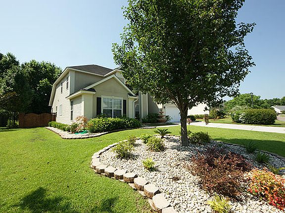 Welcome home to Village Green, located a stone's throw from 3 of our most beautiful plantations and close to shopping and local hospitals.Village Green offers a community pool, a jogging path and many ponds that attract a variety of low country wildlife. If you are a lover of outdoors or love to entertain, this is the home for you. As you pull up to to this charming 3044 sq ft home, you will notice the beautiful hardscape and the well-maintained landscaping. The double front doors open to a grand foyer showcasing a vaulted ceiling, beautiful hardwoods and a curved stairway. To your left, through an arched doorway you will find your office/den/formal sitting room and to your right is the spacious formal dining room with crown molding, wainscoting and a beautiful light fixture. As you walk