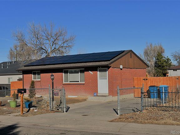 *PERFECT STARTER HOME OR RENTAL* CUTE BRICK RANCH WITH BASEMENT LOCATED ON A GINORMOUS FENCED LOT! TWO BEDROOMS AND FULL BATH UP WITH NC BEDROOM AND 3/4 BATH DOWNSTAIRS... MOST OF THE HEAVY LIFTING HAS ALREADY BEEN DONE...NEWER ROOF COVERING AND GUTTERS, FURNACE, CENTRAL AIR, HOT H2O HTR, VINYL THERMAL WINDOWS.** SOLAR PANELS AND PHOTOVOLTAIC SYSTEM INSTALLED BY BLUE RAVEN SOLAR IN 2017 AND IS PAID FOR!!!!! NO LEASE OR PURCHASE FEE..... SYSTEM INCLUDED WITH HOUSE...BUYER CAN BEGIN TO ENJOY THE BENEFIT OF RENEWABLE ENERGY IMMEDIATELY!! LOCATION IS IDEAL: ALMOST AN EQUIDISTANT 30+/- MINUTE DRIVE TO EITHER DIA OR DOWNTOWN....A MERE 10 MINUTES TO THE SHOPPING, THEATERS AND RESTAURANTS AT NORTHFIELD AT STAPLETON. ELEMENTARY SCHOOL IS CLOSE AND MIDDLE SCHOOL IS CLOSER! CLEAN AND READY TO GO...INCLUDES WASHER DRYER, STAINLESS FRIDGE AND STOVE.... LARGE BACKYARD WITH PLENTY OF ROOM TO BUILD GARAGE!*****QUICK POSSESSION*****