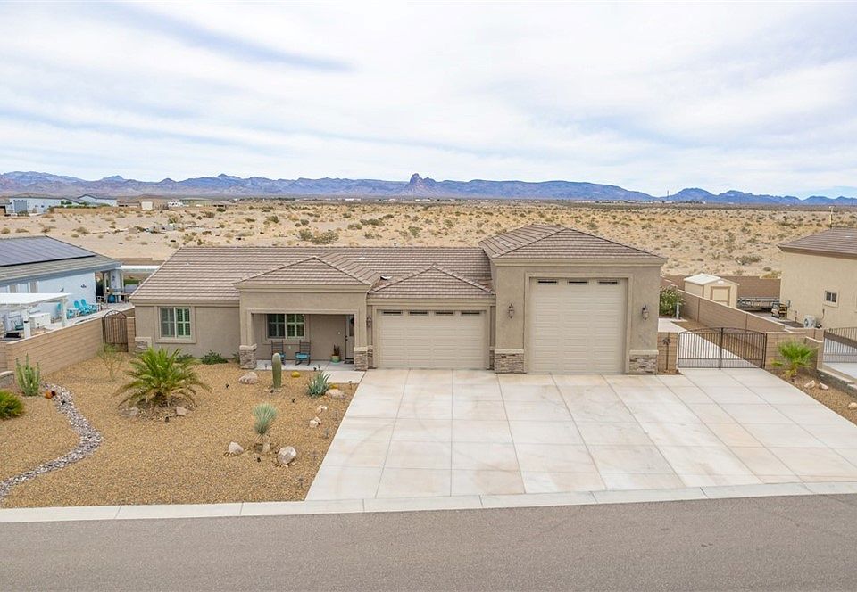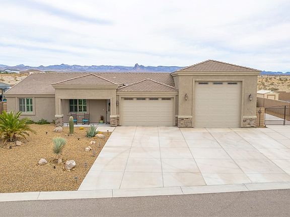 Immaculate Home in the Newer Subdivision of Valley View of Sunrise Hills! 52' Deep, Air conditioned RV garage with Full hook ups. 30 & 50 amp service in & outside. Additional 2 car garage. Shows like a model home! 3/2 home with Granite counters, Tile floors, Plantation shutters throughout. Landscaped backyard with low maintenance landscape. Mountain Views west! Enjoy the morning sunrise! On Tribal sewer.Buyer to verify square footage, utilities and flood plain