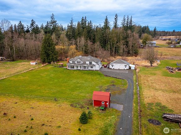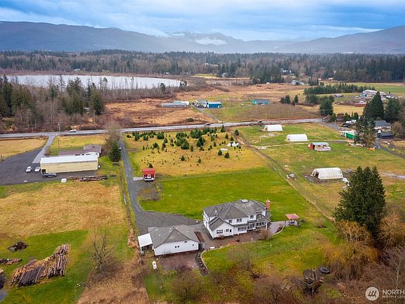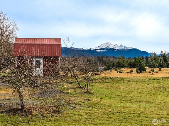 Exceptional living on expansive acreage with breathtaking Mount Baker views. This home seamlessly blends rural tranquility with modern amenities. Enjoy smart home technology, Starlink high-speed internet plus comfortable & efficient radiant floor heating. Floor plan features formal & informal living spaces, a main-level den/office & a fully remodeled kitchen. Upstairs you find a spacious primary suite with stunning views along with three additional bedrooms. A detached high-bay shop, complete with a ¾ bath and office space, adds versatility. RV hookups, a generator, and an EV charging station all included. The front half of the sunny front yard also includes a you-cut Christmas tree farm! All of this, just 15 minutes from Bellingham.